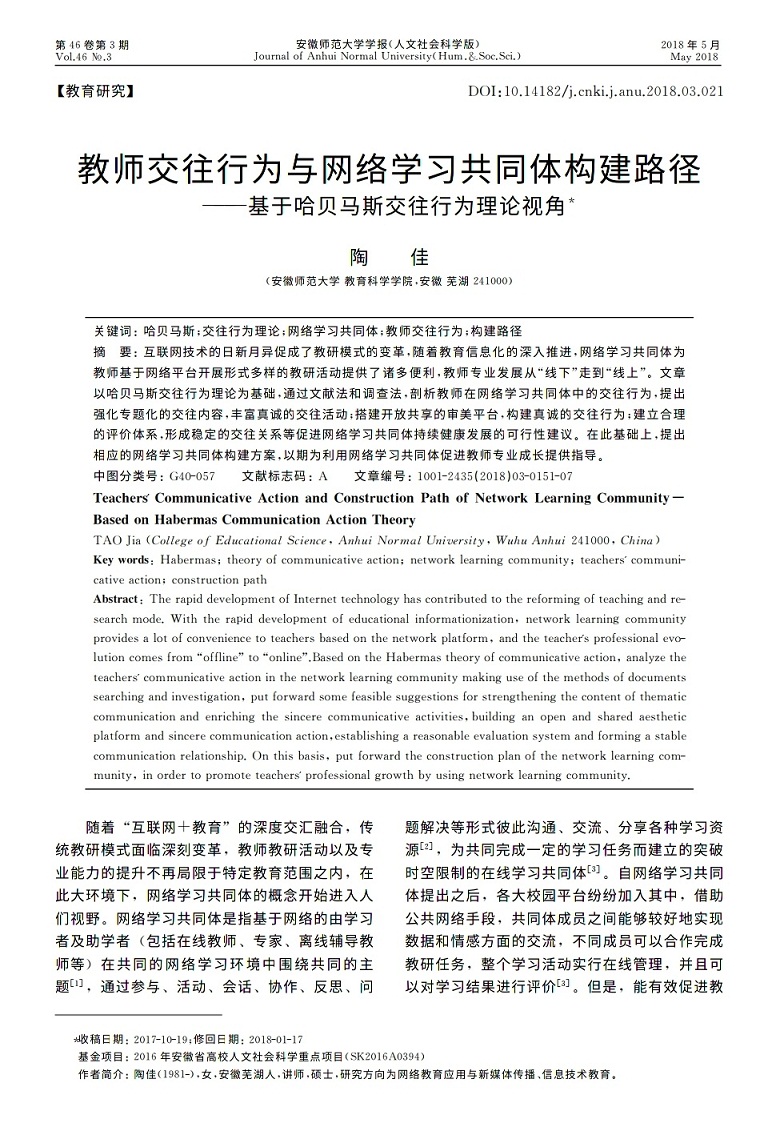 陶佳:教师交往行为与网络学习共同体构建路径——基于哈贝马斯交往行为理论视角