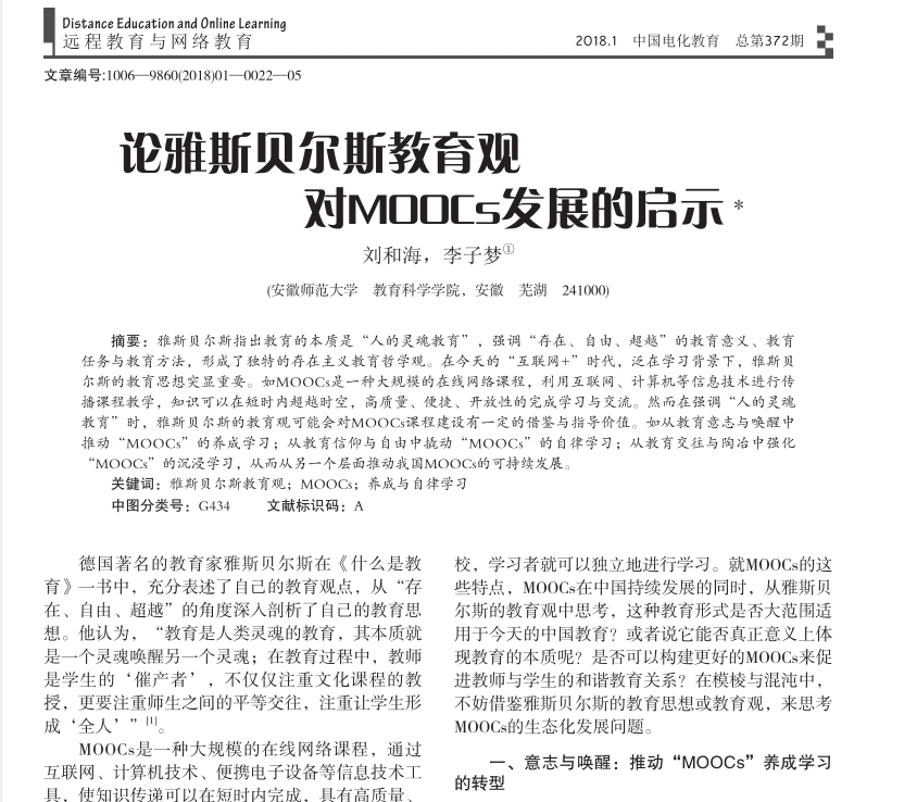 刘和海,李子梦:论雅斯贝尔斯教育观对MOOCs发展的启示