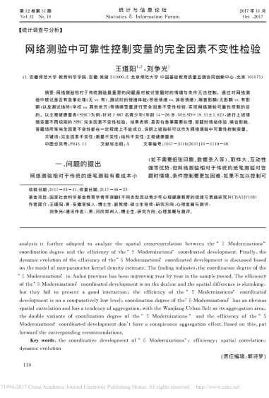 王道阳 刘争光:网络测验中可靠性控制变量的完全因素不变性检验