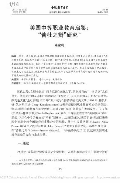 路宝利:美国中等职业教育启鉴:“普杜之辩”研究