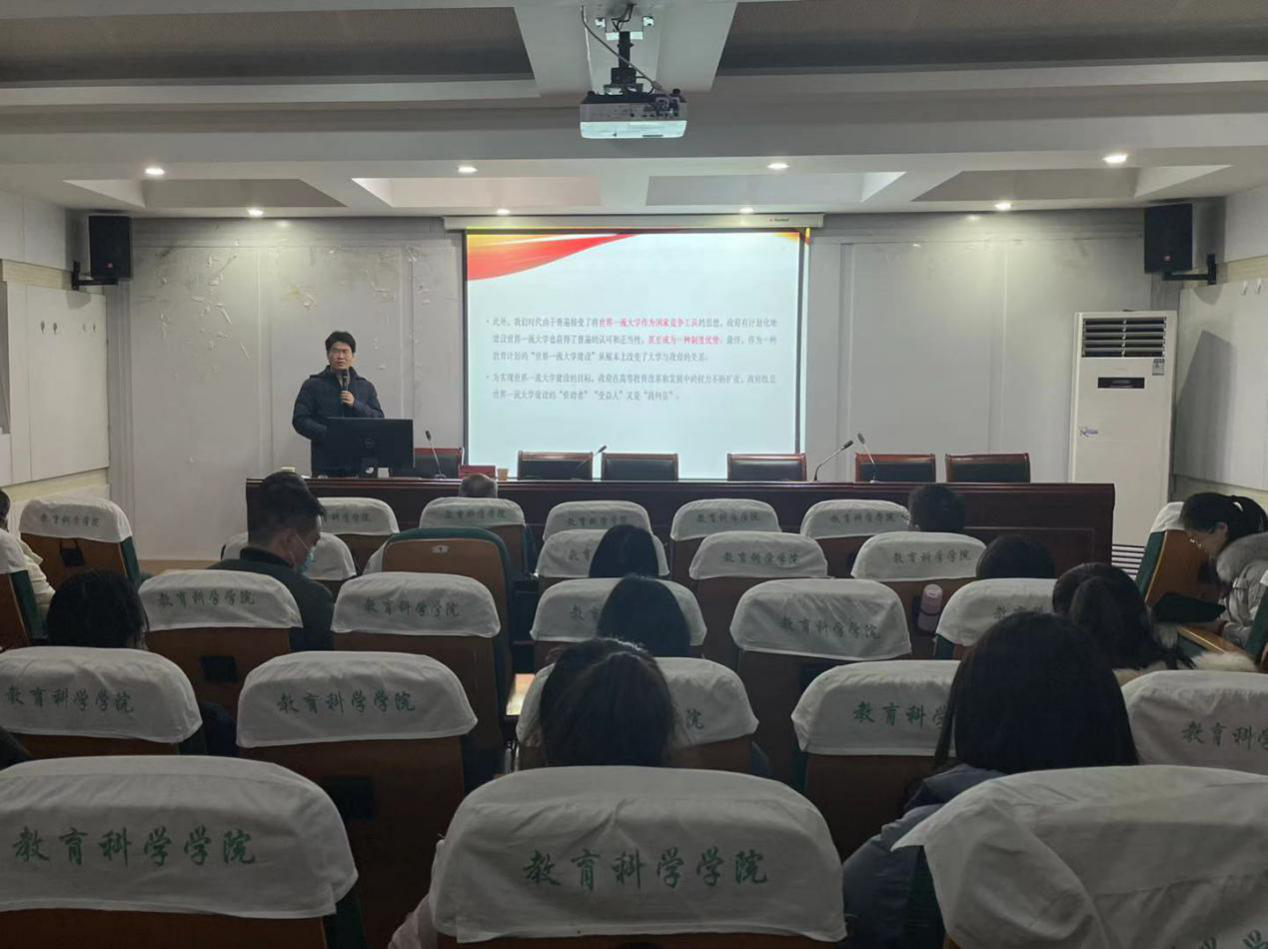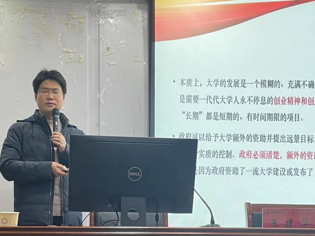 本网讯(教科院 文/何亮 图/王薛晴)1月12日下午,南京royal皇家88平台博士生导师王建华教授应邀来我院作“教育计划、量化评估与一流大学”的主题讲座。本次讲座于教育科学学院三楼学术交流中心举行,由我院院长李宜江教授和我院金维才教授主持,高等教育学、教育学原理和课程与教学论等专业老师及研究生到场聆听学习。