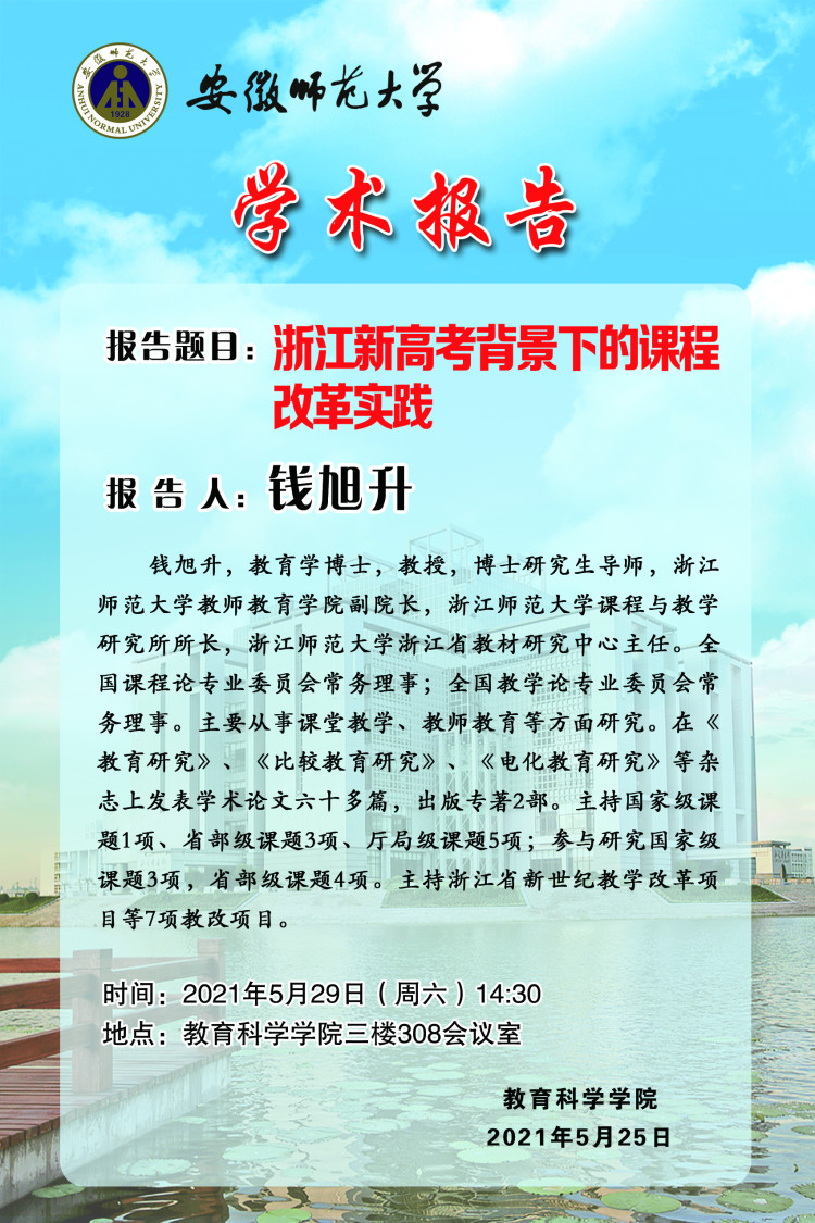 【学术预告】钱旭升:浙江新高考背景下的课程改革实践