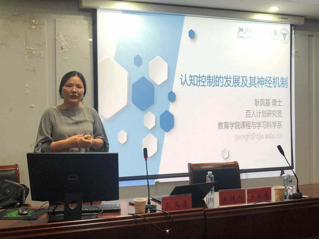 本网讯(教科院 文/邸滢瑞 图/唐小菲 李琴)6月4日下午,浙江大学教育学院课程与科学学习系特聘研究员、博士生导师耿凤基教授应邀来我院,作《认知控制的发展及其神经机制》主题讲座。本场讲座于教育科学学院三楼学术交流中心举行,由我院方双虎教授主持,心理学、心理健康教育等相关专业青年教师、博士和硕士研究生到场聆听和学习。