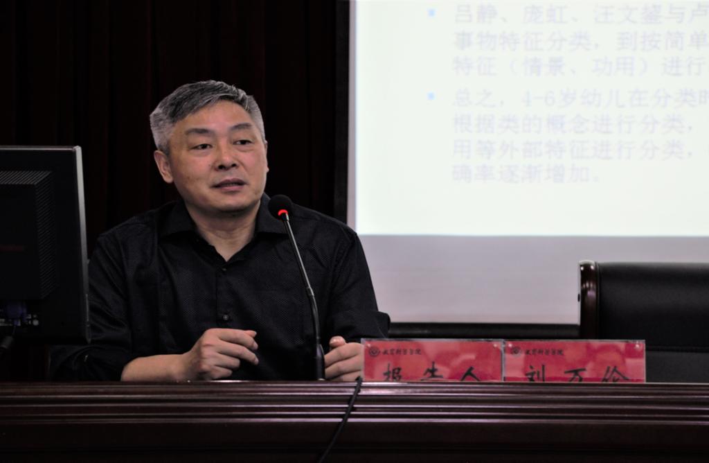 本网讯(教科院 文/唐小菲 图/杨霄楠)5月29日下午,浙江师范大学博士生导师,发展与教育心理学方向学科带头人刘万伦教授应邀来我院,作题为《幼儿类别学习的发展特征及促进》的学术报告。本场报告在图书馆报告厅举行,由我院博士生导师赵必华教授主持,心理学、心理健康教育、学前教育学专业的教师和研究生到场聆听并学习。