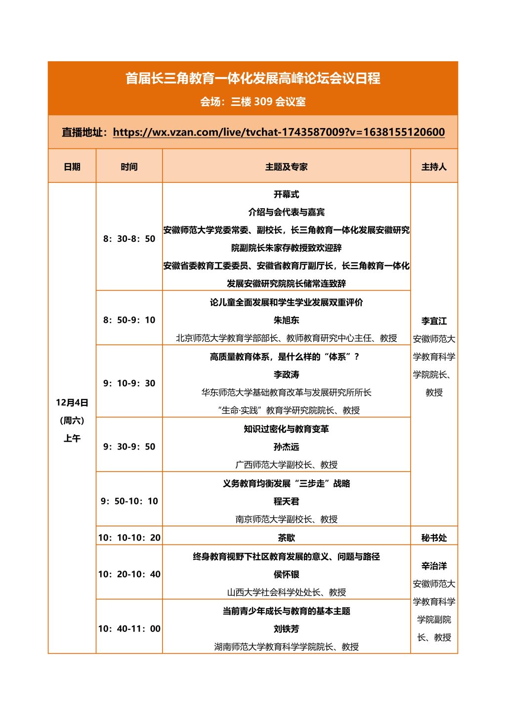 【学术预告】首届长三角教育一体化发展高峰论坛日程