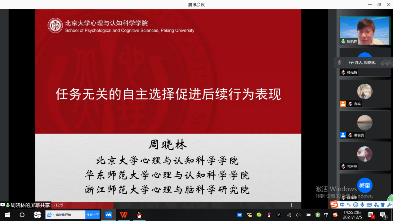 本网讯(教科院 桂先梅)12月5日下午,皖江心理大讲坛第八十六讲通过腾讯会议这一平台在线上如期举行,北京大学心理与认知科学学院博士生导师周晓林教授应邀为我院师生作《任务无关的自主选择促进后续行为表现》学术讲座。讲座由我院博士生导师宣宾教授主持,心理学系葛明贵教授、何元庆副教授等,以及心理学和心理健康教育专业硕士研究生、本科生等近90人线上聆听学习。