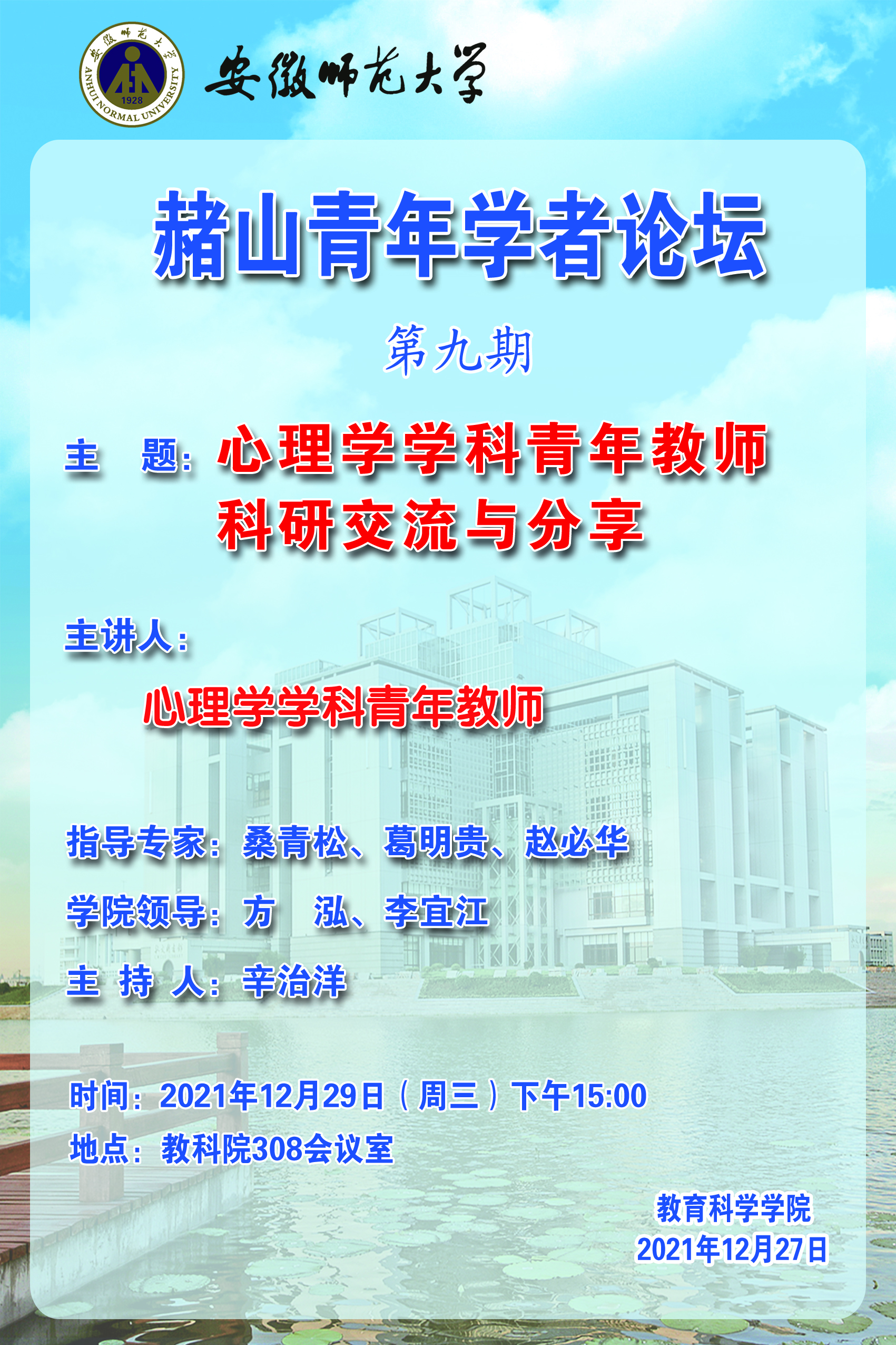 【学术预告】赭山青年学者论坛第九期:心理学学科青年教师科研交流与分享