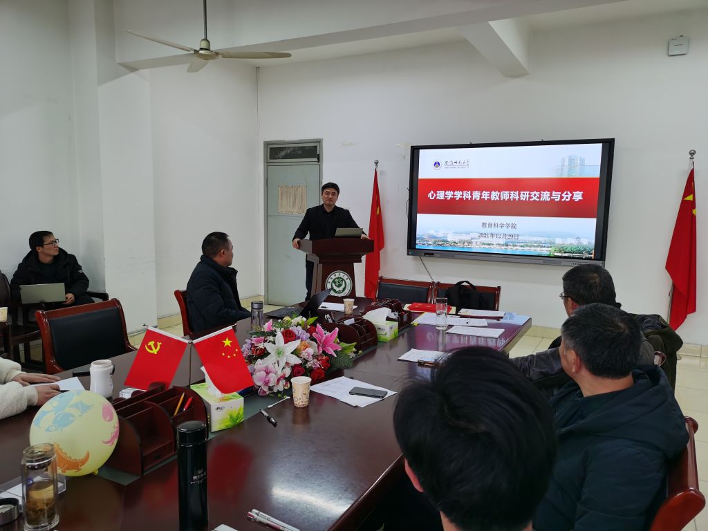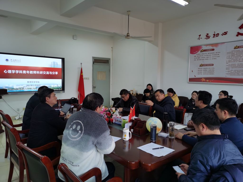 2021年12月29日下午,“赭山青年学者论坛”(第九期)于教科院308会议室举行。本期的主题是“心理学学科青年教师科研交流与分享”,院长李宜江教授出席本次论坛,葛明贵教授、桑青松教授和赵必华教授担任点评专家,论坛由辛治洋副院长主持。