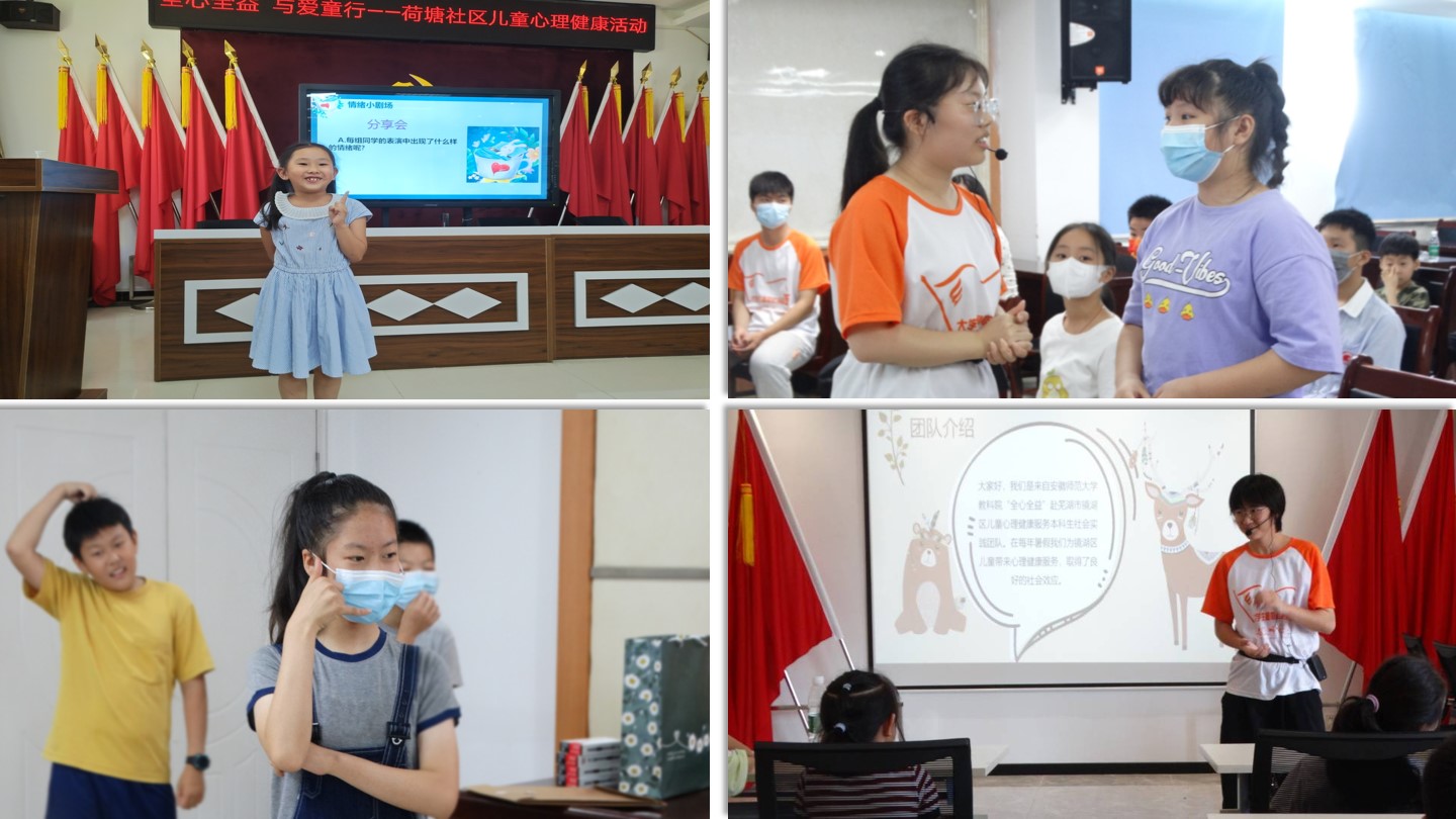 为加强社会心理服务体系建设,进一步凸显专业特色,关注儿童在新冠疫情下的身心健康问题,安徽师范大学教育科学学院“全心全益”赴芜湖市镜湖区社区儿童心理健康服务社会实践活动,于7月1日在天门山街道的香格里拉社区、广福社区和弋矶山街道的荷塘社区、春江社区正式开始。