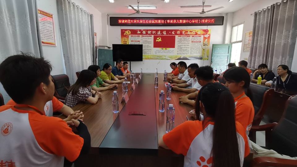 为深入了解暑期社会实践开展情况,对接阜南县进行深入合作,7月12日上午,阜南县方集镇党委书记李光、方集镇中心学校校长张孝成与院党委副书记杜凤、小学教育专业负责人王芳、团委副书记蔡文、实践指导老师莫大贡一同来到阜南县方集镇看望教科院“全心全益”赴阜南县“赤橙青年”暑期社会实践团队并对实践点进行了授牌。
