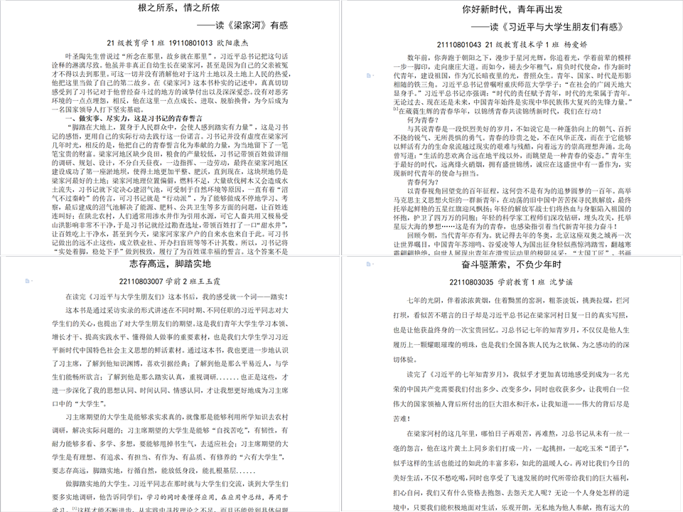 青春共读,坚定理想信念。以吾之渺渺,成山河泱泱。为培养有理想、敢担当、能吃苦、肯奋斗的时代好青年,教科院积极引导学生阅读党的二十大相关文献、《习近平的七年知青岁月》《习近平与大学生朋友们》《梁家河》等相关书籍,并撰写学习心得和读书笔记,在阅读过程中明确自己的责任与担当,加强自身的理论知识储备与道德修养。