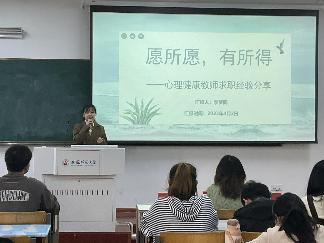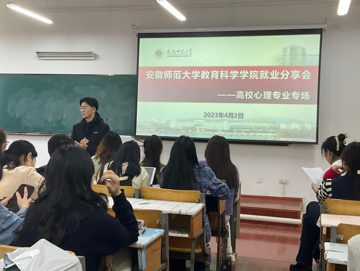 为增强研究生生涯规划与职业发展意识,提高学院择业引导、就业帮扶工作的针对性,4月2日下午,教育科学学院在教学楼1311召开了第四期研究生就业分享会。本期分享会以高校心理中心就业为专题,邀请2014级硕士研究生聂余、2017级硕士研究生赵慧宇及2020级硕士研究生李梦圆三位优秀校友介绍就业经验,畅谈求职感悟。会议由校友部苏亚男主持,团委副书记付银行、全体心理学和心理健康教育专业在校研究生参与。