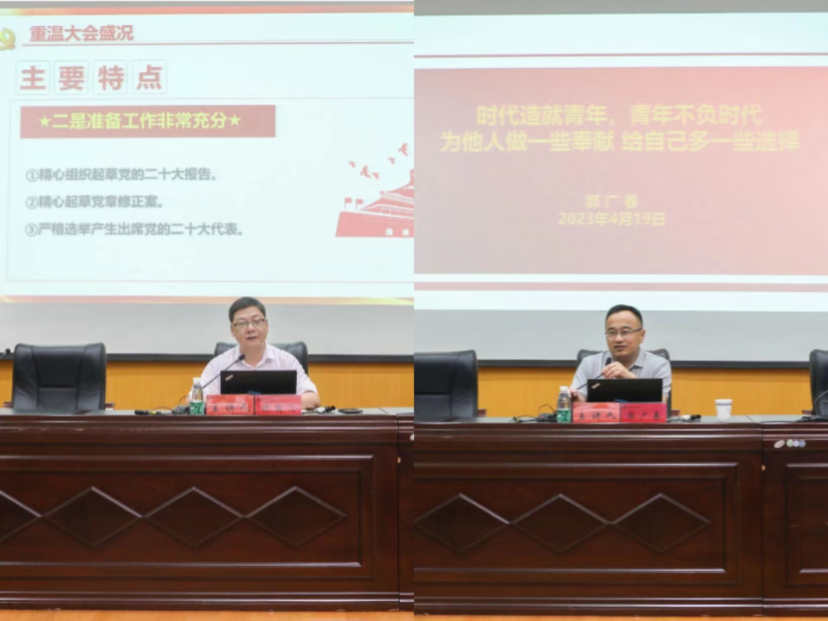 学习思想跟党走,时代青年勇担当。开班式上,学院党委书记许国飞为培训班同学讲解党的二十大精神,对党的二十大报告进行了详细介绍,围绕大会的主题、主要议程、主要特点、主要内容、五个“牢牢把握”等方面进行展开交流,鼓励同学们自觉加强理论学习,弘扬伟大建党精神,自信自强、守正创新,踔厉奋发、勇毅前行。安徽工程大学材料科学与工程学院党委书记郭广春做《时代造就青年,青年不负时代,为他人做一些奉献,给自己多一些选择》专题报告,他以伟大的新时代与新时代青年之间的关系为切入点,分享了学生干部的三种能力以及为人为事的八个品质,强调时代是青年发展的宝贵沃土,青年是发展的不竭动力,广大青年要坚定不移听党话、跟党走,怀抱梦想又脚踏实地,敢想敢为又善作善成。