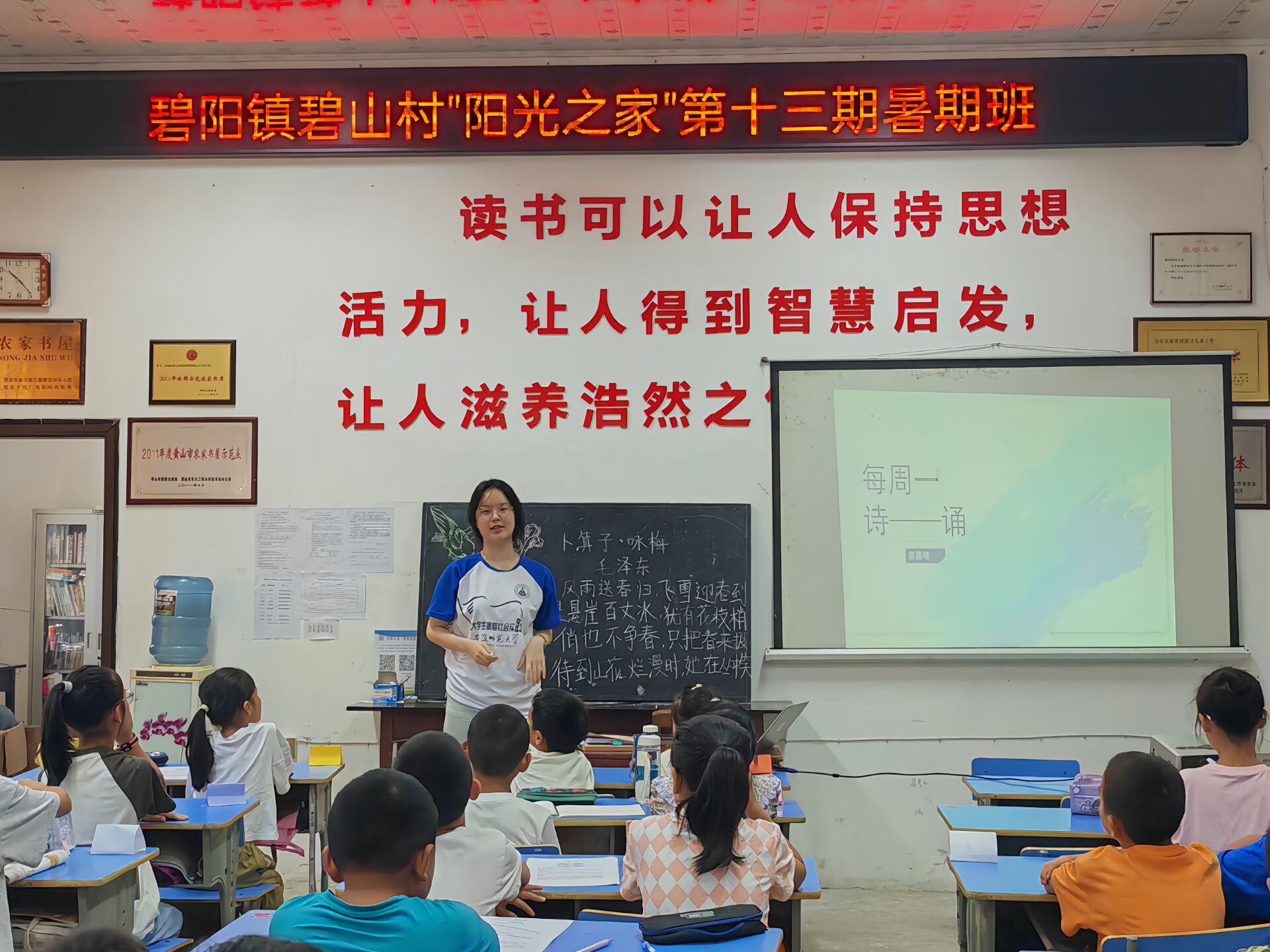 7月10日清晨,在碧山村前任村委书记王晓峰和碧山村关工委常务副主任胡建新的号召下,各位家长带着孩子陆续来到“阳光之家”教学点报到,40人的“阳光班级”正式形成。