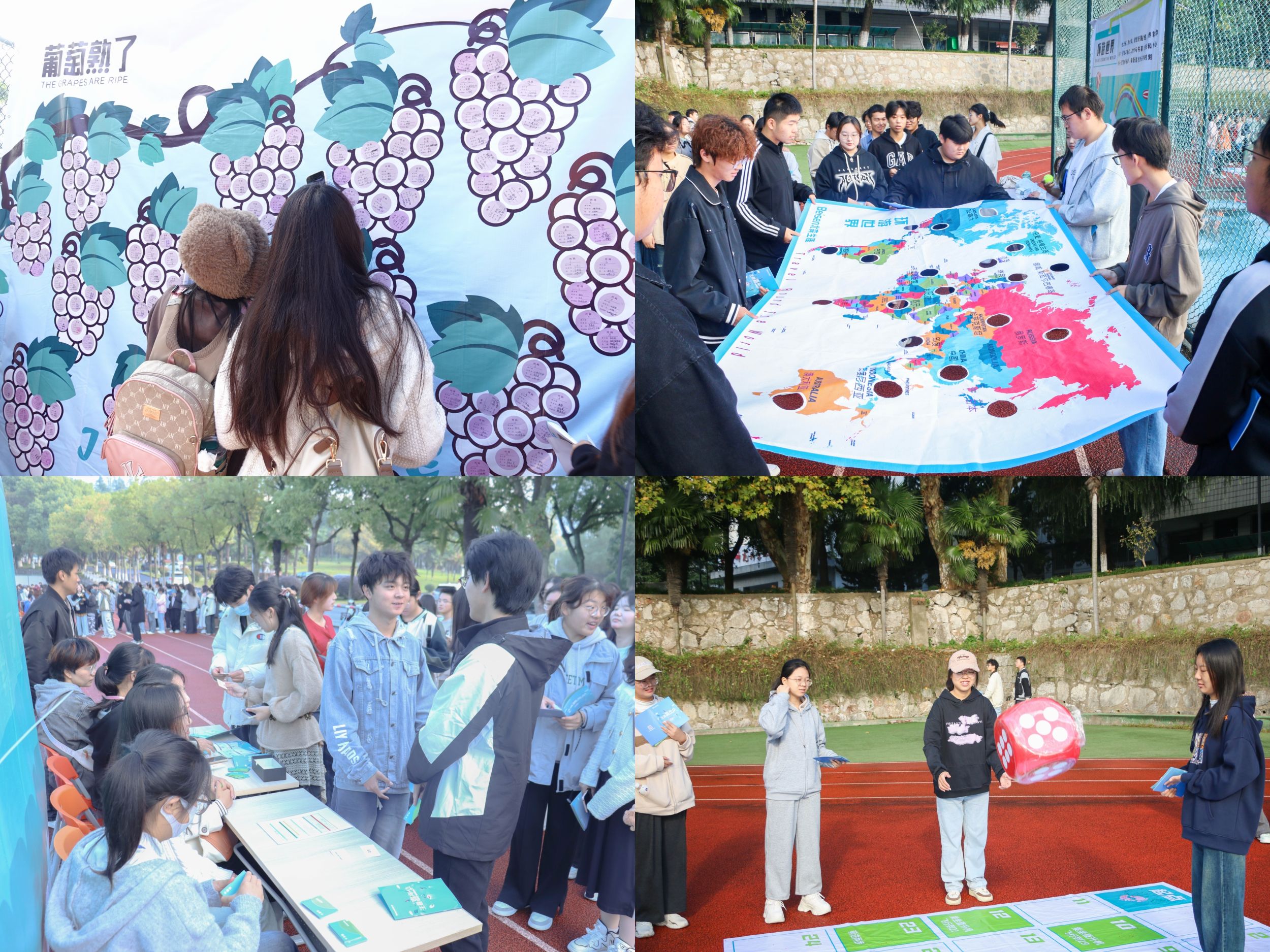 本次活动将职业生涯规划各元素设计成四大主题区域、八个体验式游戏活动。参与者在“生涯大转盘”领取活动手册之后,依次进行“葡萄熟了”“性格探索”“未来直通车”“职业飞行棋”“天马行空”“生涯小辩手”“急速60s”“环游世界”八项游戏活动。通过沉浸式的游戏体验引导学生探索个人的职业兴趣,帮助学生探索未来的职业发展方向,激发创意联想,引导学生意识到不同职业与个人特质的关联,为以后职业生涯奠定基础。