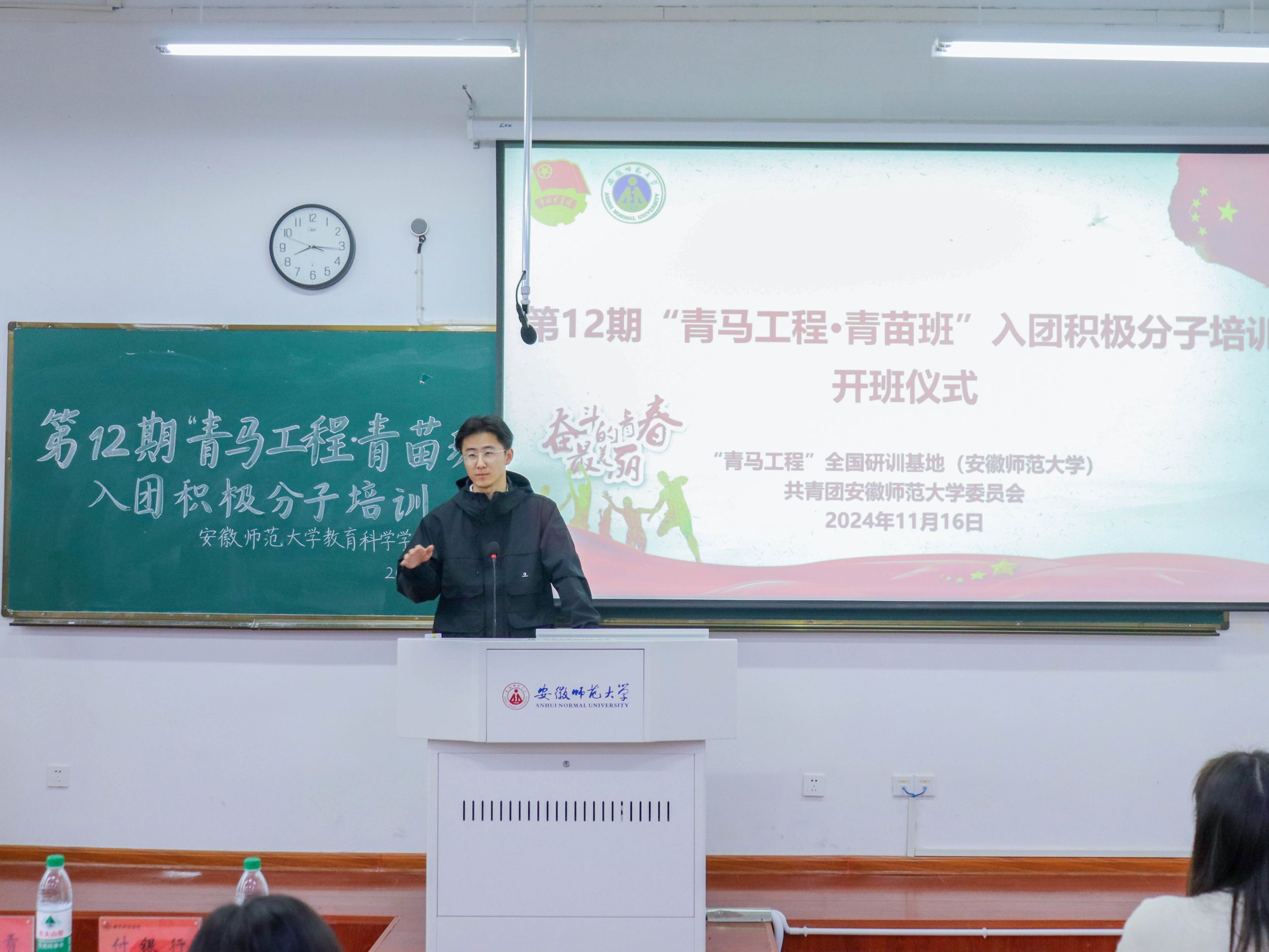 为落实大学生护航行动计划,强化入团积极分子政治觉悟、理论素养。11月16日,教育科学学院于赭山校区教学楼1302室开展第12期“青马工程·青苗班”入团积极分子培训工作。教育科学学院团委书记付银行出席开班仪式,赭山校区各学院入团积极分子参加开班仪式和培训工作。