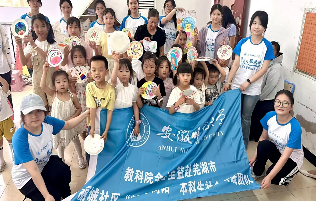2025年7月1日上午,教育科学学院全心全益赴芜湖市丽城社区“新芽向阳”本科生社会实践团队在丽城社区文津花园便民服务点启动以“童心无限,逆转乾坤——跟着哪吒‘趣’冒险”为主题的首日活动。活动尝试将文化IP与教育实践结合,以动画电影《哪吒》中“打破偏见、勇往直前”的精神为内核,通过五大沉浸式游戏环节,让小朋友在趣味互动中理解价值观内涵,吸引了21位小朋友前来参与。