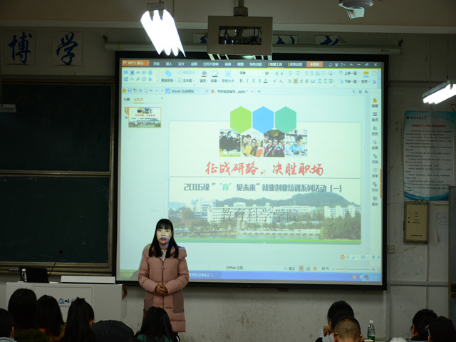 本网讯(教科院 施羽晗 )12月10日晚七点,教科院2016级全体本科生在田家炳教育学院8101教室参加“‘育’见未来”就业创业培训系列活动。国家认证企业培训师、新东方在线考研培训经理、资深规划师施权月进行本次演讲。本次活动由2016级兼职辅导员艾瑞雪主持。
