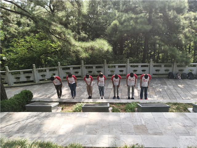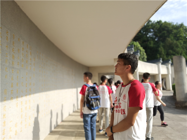 725早上五时许,迎着初升的朝阳,队员们踏上了探访皖南事变烈士陵园的红色之旅。泾县身处新四军革命根据地,为了纪念皖南事变新四军烈士,特在城郊建此纪念馆。队员们首先在门口进行合影留念,等待纪念馆开门后便进去参观。在队长的带领下,队员们参观了园中硕大的英雄纪念墙,写满英雄事迹的功勋墙,庄严肃穆的无名烈士墓。接着沿着陡峭的石阶向上,山顶的巨大石碑令队员肃然起敬。在另一边是烈士墓区,队员们向先烈们敬以鞠躬礼以表达缅怀崇敬之情。最后,队员们参观了皖南事变陈列馆,馆内的实景仿造仿佛再现了皖南事变新四军英雄的英勇,参观结束后队员们在留言板上写下了对先烈们的敬佩。红色之旅圆满结束。
