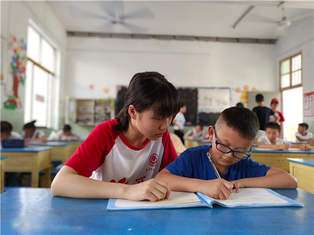 717下午两时许,团队经过几个小时的奔波到达了目的地——皖南第一希望小学。因为地处革命根据地腹地,资源有限,环境简陋,可这却动摇不了队员们的决心。次日,凭借着前期的充分准备以及有力的线上线下宣传,再加上团队前几年的良好口碑,招生工作取得了很大成功。队长根据实际情况,针对队员们的专业分配了相应的辅导和教学任务。团队本着全面发展的理念,术业有专攻,给孩子们设置了国学,美术,手工,英语等一系列课程,希望能够更大程度上帮助孩子们。团队有严格的作息制度和教学计划,以便更好地为孩子们保驾护航并保证教学质量。夏日炎炎,队员们却始终怀揣赤诚之心,尽心尽力为孩子们服务。