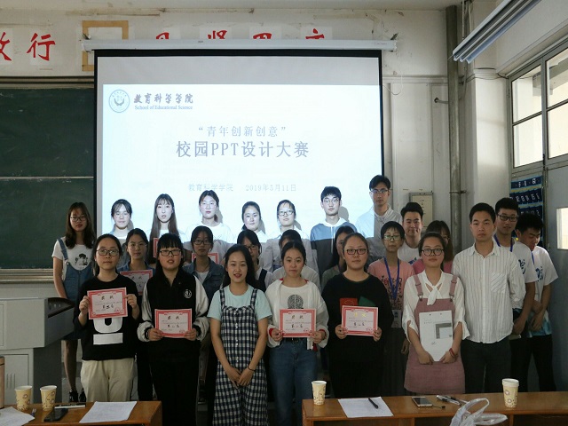 本网讯(教科院 高凡)传承五四薪火,展现青春风采。值此纪念“五四”运动100周年之际,为了更好地激励大学生传承五四精神,进一步深入学习习近平总书记在纪念五四运动100周年大会上的重要讲话,提升新时代新青年的创新实践能力。近日,教育科学学院面向全体大一学生,结合我院教育技术学专业特色,举办了一场“青年创新创意”校园PPT设计大赛。活动通过线上线下广泛宣传,我院学子踊跃参加活动。