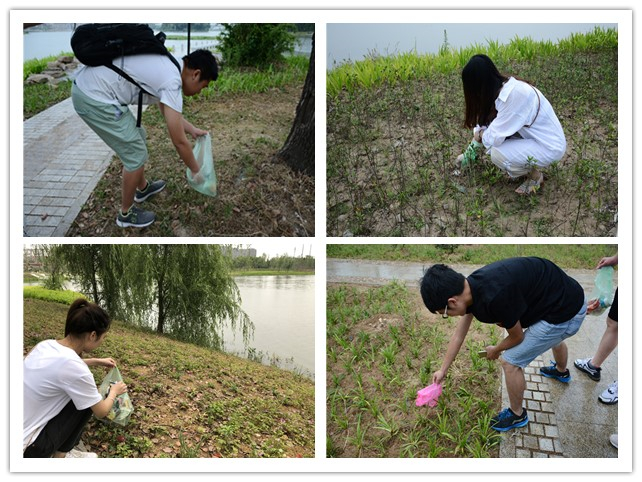 志愿服务正式开始,班级同学分工合作。湖边湿地,鹅卵石小道,路边的灌木丛,公园的各个地方都有着同学们积极劳动的身影。这些垃圾不仅影响公园的美观,也对这里的生态造成破坏。同学们在志愿服务的过程中,不仅仅是重复将垃圾装进袋的动作,更是在脑子里不断强化保护环境的意识,并以此行动向路人宣传环保理念。值得一提的是,在志愿服务过程中,突然下起了雨,可是同学们没有马上离开自己的工作岗位,依然坚持将自己负责区域的垃圾捡完。早上十点半,2017级教育技术学专业的同学们在公园大门集合,此次“易起行”暨志愿服务活动圆满结束。