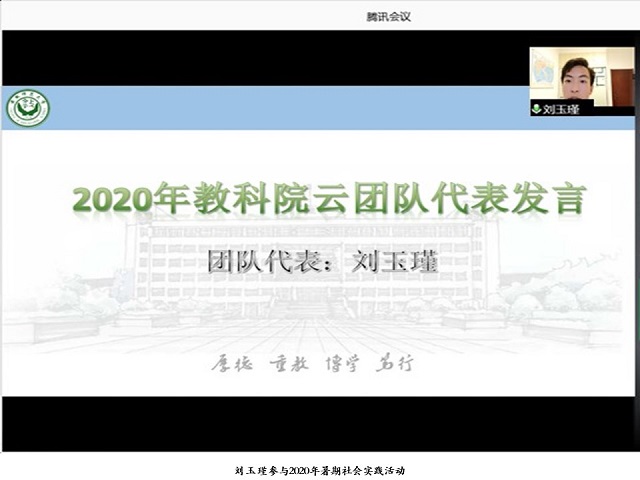 本网讯(教科院 赵小雨)教科院2020年青春三下乡暑期实践活动正如火如荼进行中,各团队斗志昂扬,发挥所长,尽心尽力,在前一阶段的实践工作中收获颇多。近日教科院“全心全益·育云相伴”云支教团队队长——刘玉瑾同学热情地分享了他的支教故事,在叙述中表达了他的感触与心得,传递了他的期盼与祝福。