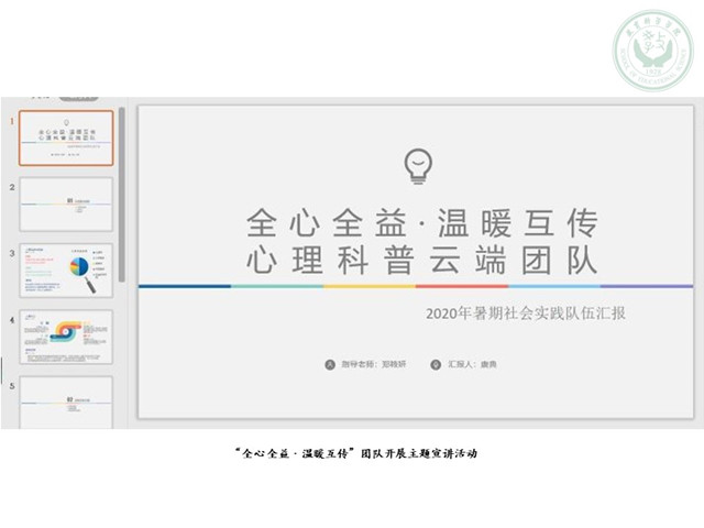 无论是前期准备,还是后期课程,“全心全益·温暖互传” 心理健康教育云端团队队员们认真积极地处理各项工作,齐心协力,共同完成此次实践活动。在课程中,该团队针对不同年龄的学生群体开展不同的授课内容:低年级学生主要以活泼有趣的心理内容为主,高年级同学则以学以致用的知识内容为主。
