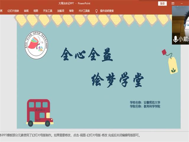 回顾以往活动,从生活中的新冠疫情到梅雨季节频发的水灾,这都与幼儿息息相关。本团队正是立足于此,采用一种易于被孩子接受的方式来传递时代的信息。到目前为止,教科院“全心全益·绘梦学堂”线上共读云支教活动正式结束,团队成员用行动帮助和县的幼儿拓展知识,带去爱与温暖,陪伴他们成长。与此同时,团队成员在此次支教中做贡献、受教育、长才干,在成长中学习,不忘初心,砥砺前行,筑梦未来,让爱与希望同行!