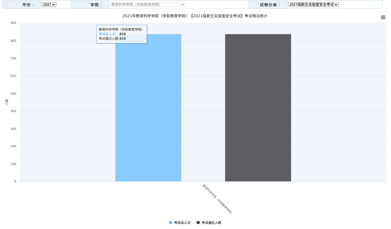 为进一步巩固实验室安全教育的学习成果,学院相继安排了两次实验室安全模拟考试和一次正式考试。截止11月10日,2021级838名新生(含专升本和部分研究生)全员通过了实验室安全测试,理论的学习为日后安全顺利地完成相关实验及实践课程奠定了良好基础。