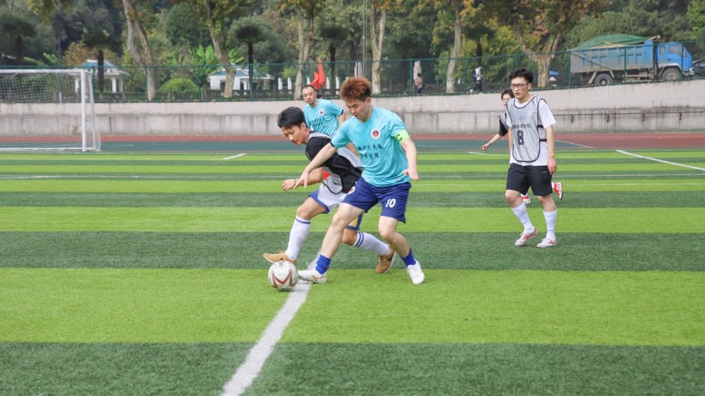 本次比赛有男足、女足各四支参赛队伍,分别来自教育科学学院、生命科学学院、法学院和音乐学院,比赛共分四场,赛前,各球队的成员认真进行热身训练,积极为比赛做好准备。在教科院和法学院两支队伍之间的比赛中,双方起初都采取保守作战的策略,互相试探,但随着对对方球风的不断了解,双方队员也渐入佳境,不时打出精妙的配合得到了观赛人员的阵阵欢呼,让现场气氛更加热烈。