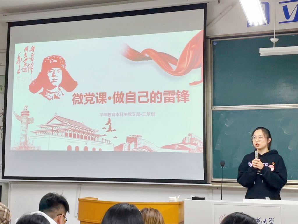 三月春光明媚,是讲文明、树新风、学雷锋的季节。学前教育本科生党支部全体成员聚焦“学雷锋”,开展了三个“一”活动。一次分享、一次宣讲、一次志愿服务活动,既从理论角度深入学习雷锋,感悟雷锋精神,又从实践层面将雷锋精神运用到实处。
