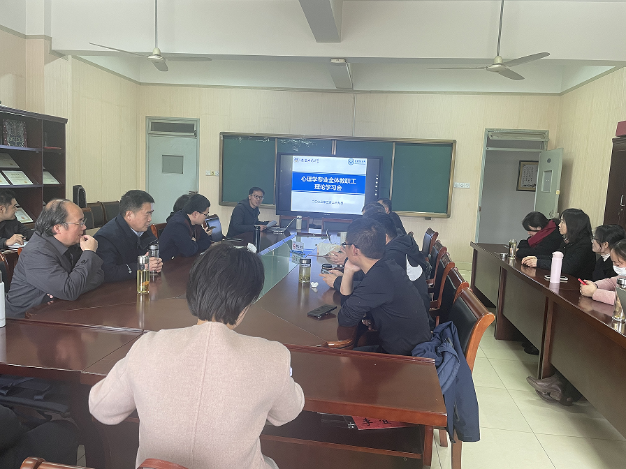 为了进一步加强理论学习、提升教师的政治理论素养,心理学专业于3月29日下午在408会议室召开了教职工理论学习会。会议由心理学教工党支部书记王礼军主持,心理学专业全体教师参加会议。