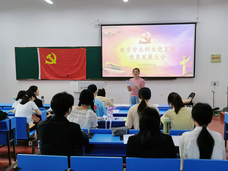 为进一步提升党员发展质量,规范党员发展流程,提高党员党性修养。5月31日下午,在教学楼1103教室,教育学本科生党支部举行2023年上半年党员发展大会暨主题党日活动,支部全体党员以及八位发展对象参加会议,会议由支部书记赵茜主持。