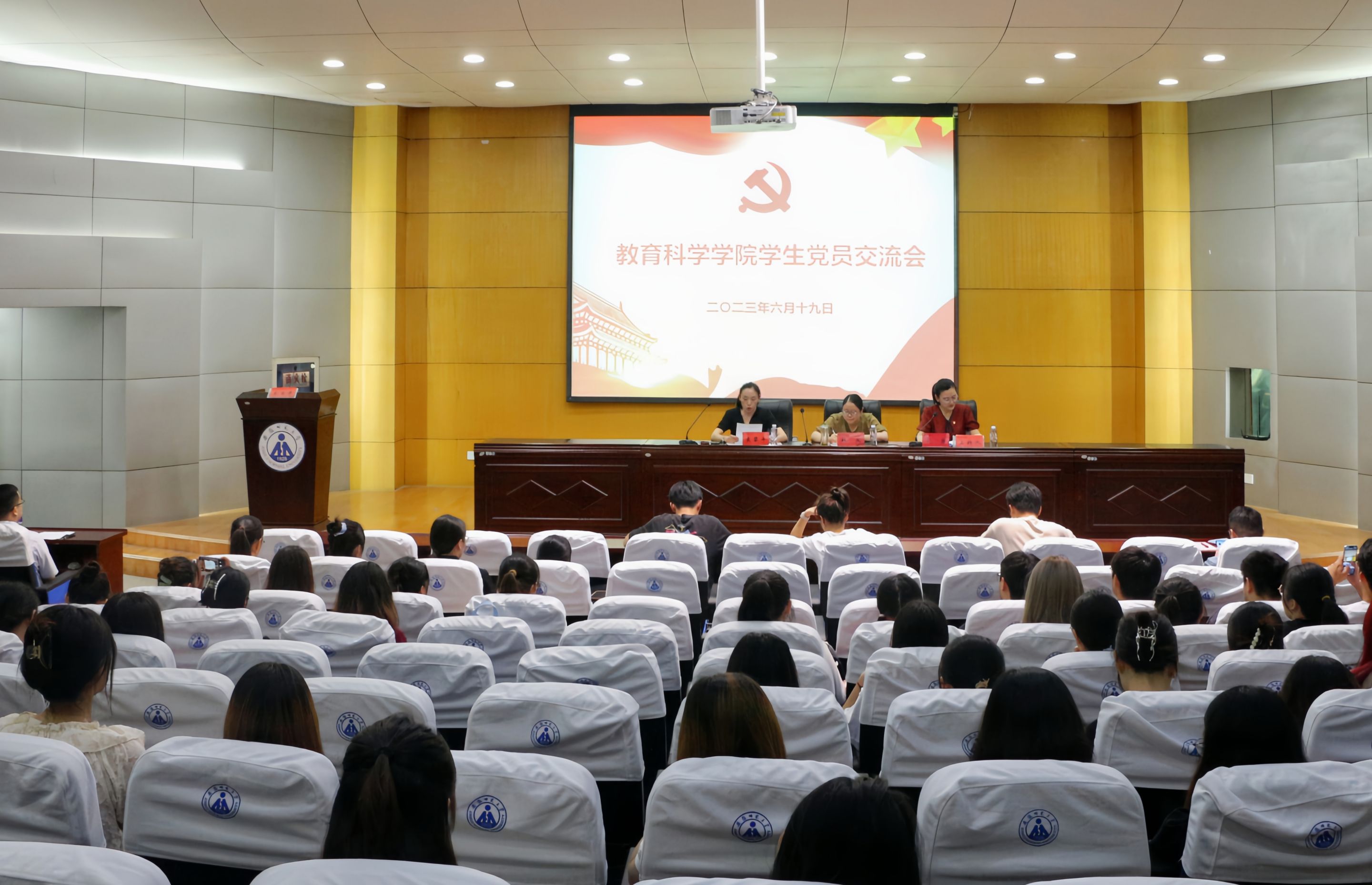 交流会在庄严的国歌声中拉开序幕,全体人员起立奏唱国歌。袁黎平宣读了2022年下半年和2023年上半年新发展党员名单。新发展党员代表2021级教育学专业本科生魏嘉熹交流发言,表达了她对加入党组织的激动与感恩之情,鼓励大家将个人的奋斗融入国家富强和民族复兴的时代洪流中,真正以“功成不必在我”的境界创造“功成必定有我”的成绩,努力成长为堪当民族复兴重任的时代新人。2019级学前教育专业本科生薛敏、2020级教育学方向研究生何亮作为毕业班党员代表依次发言。薛敏分享了自己在大学四年的成长与毕业之际的不舍,号召毕业班党员能够在各自的人生道路上锐意进取、奋发图强,走好每一个过程,做炬火、成光芒,不留遗憾。何亮分享了自己在党组织的培养与关怀下的自我成长和不断提高的心路历程,更加坚定了自己对党的信仰和忠诚,为成为一名优秀的共产党员而不懈努力。