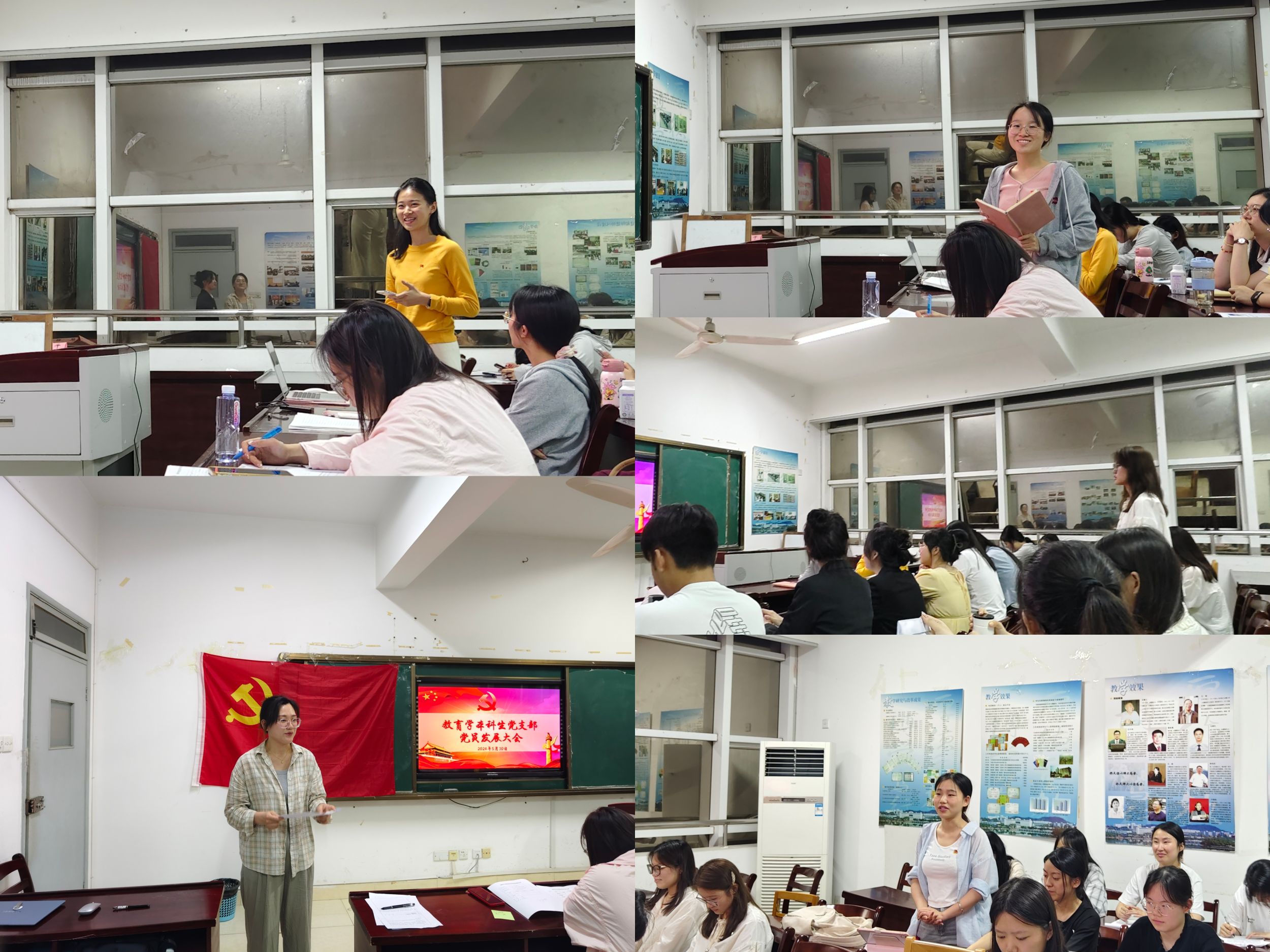 为进一步提高党员发展质量,加强党员教育管理,充分发挥支部党员的先锋模范作用,2024年5月30日晚,教育科学学院教育学本科生党支部于田楼B座412会议室举行2024年上半年党员发展大会暨党纪学习教育专题党课。学院党委副书记杜凤、支部全体党员及六位发展对象参加会议,会议由支部书记赵茜主持。
