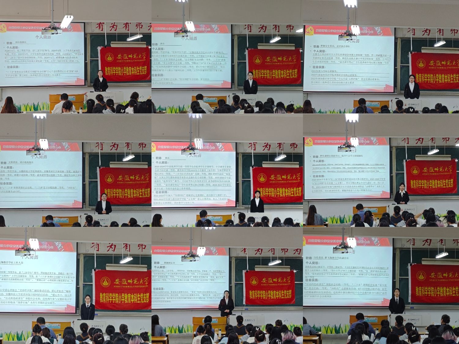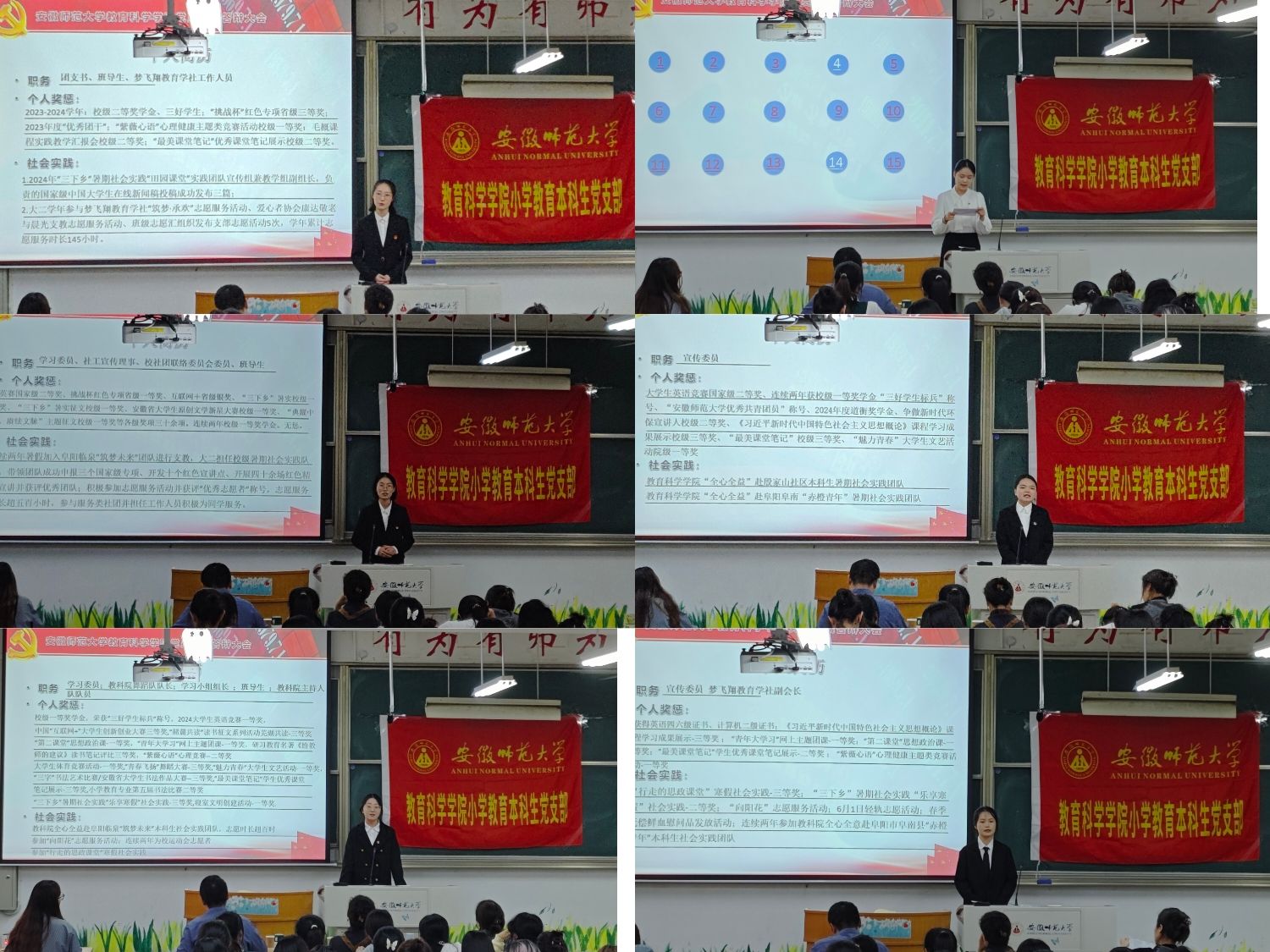 为进一步贯彻落实《中国共产党发展党员工作细则》相关规定,提高党员队伍的整体素质,2024年10月16日下午,教育科学学院小学教育本科生党支部于田楼8308教室召开了2024年下半年党员发展答辩大会。小学教育本科生党支部书记程雅楠主持会议,教育科学学院党委委员、行政院长何海燕,小学教育本科生党支部副书记莫大贡作为教师组参与现场答辩打分,支部全体学生党员、入党积极分子参与现场评议工作。