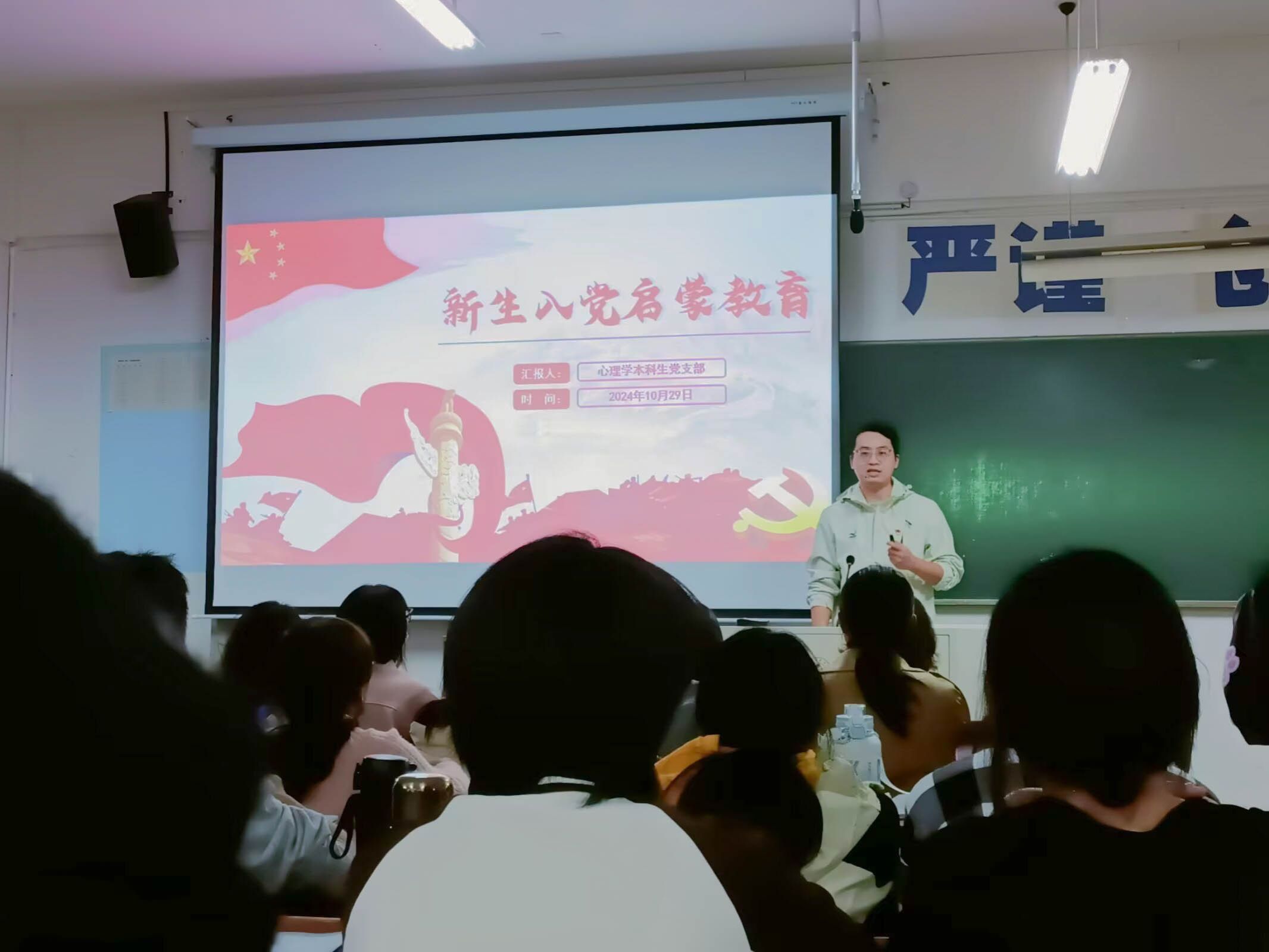 明确入党相关条件及流程,筑牢理想信念,坚定政治信仰1024-31日晚教育科学学院各专业分别开展2024级本科生入党启蒙主题班会党支部书记张理强、蔡文、赵茜学生党员代表李警予、谢家磊以及2024级全体本科生参会。