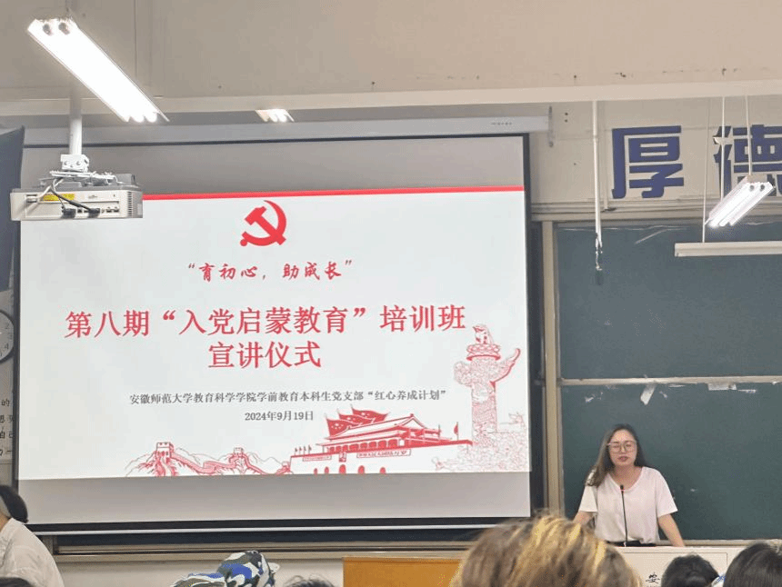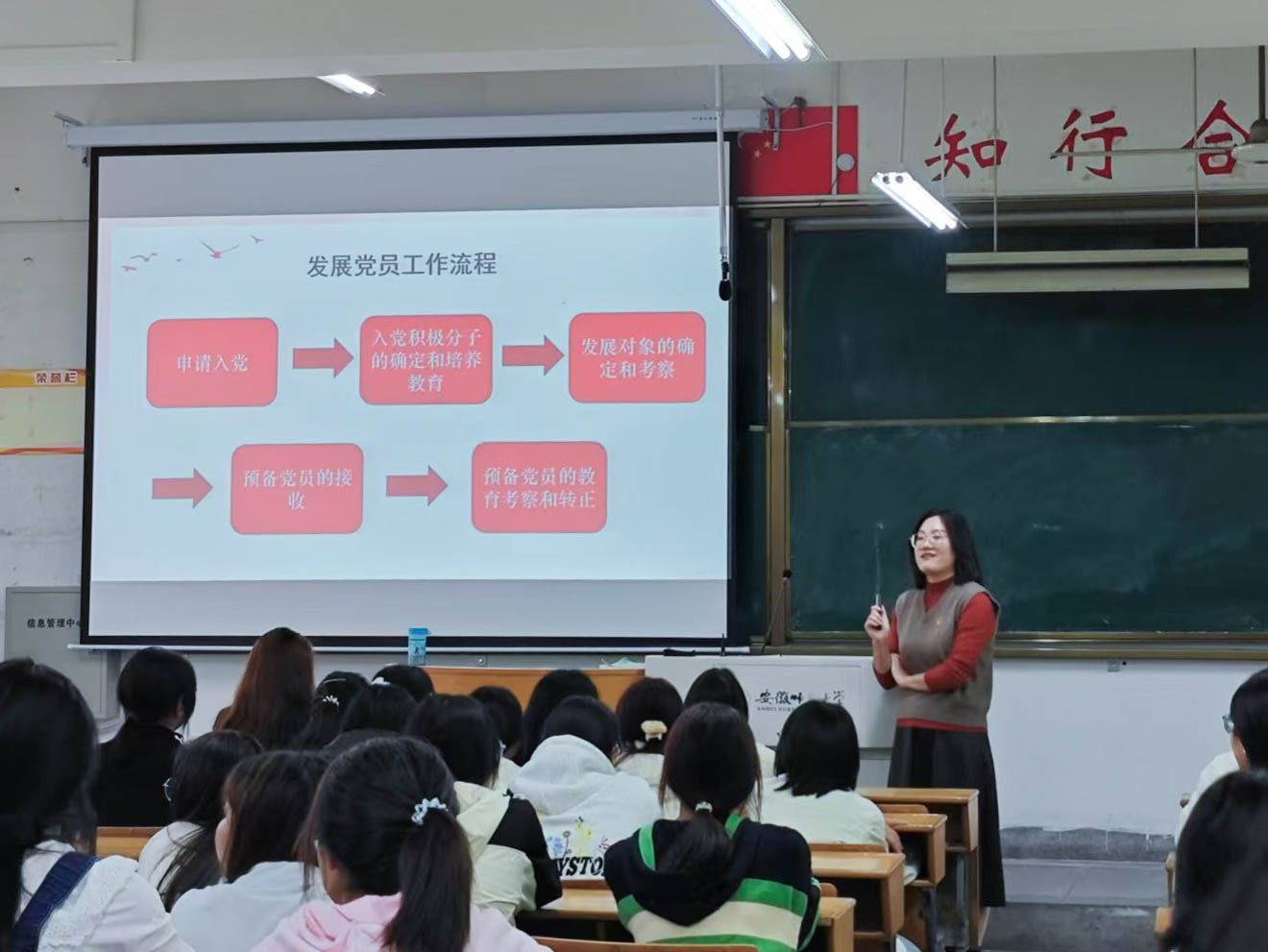 教育学本科生党支部书记茜为同学们详细解读《中共安徽师范大学委员会发展党员工作实施细则(修订)》,强调各级党组织在吸收优秀分子入党方面的责任和重要性。同学们详细阐述发展党员工作流程的同时,也对每个步骤的关键点进行了解释和指导赵茜向同学们讲述了学院首创“六维一体发展指标”,学习成绩固然是重要的,但是党员的选拔看重的是全面发展,学习生活各方面统筹兼顾。