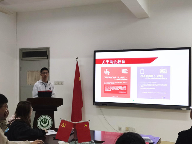 本网讯(教科院 卢皓玮)为进一步提高同学们的政治敏感性,增强时事判断力,丰富理论素养,第二期“入党启蒙教育”培训班于4月11日晚7:30在308会议室举行了“聚焦两会精神,绽放青春风采”首场两会学习分享会。三组同学围绕两会内容,选取热点话题,从不同角度出发,结合照片材料、视频剪辑、生活实例等素材,针对选题进行了较为详细的汇报交流。活动由龚伟老师主持,2018级启蒙班全体成员及四位驻班党员参加了此次交流会。