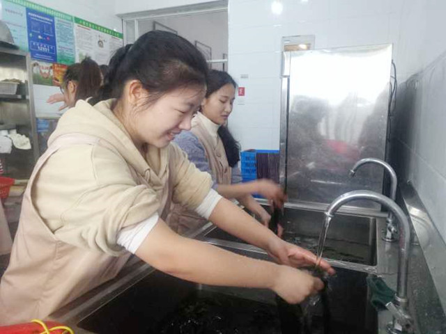 在雨花寨素食餐厅,第三党小组的成员深受在场人们“真诚相待、感恩吃素”氛围的影响,纷纷怀着虔诚的态度做着一项项服务活动:洗菜、迎宾、诵读、盛菜……忙碌的上午让大家感受到了充实,更体会到了感恩与尊重。