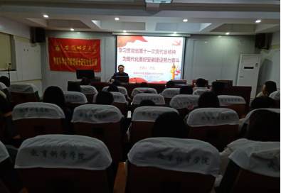 12月22日下午,院党委书记方泓在教科院313学术交流中心以“学习贯彻省第十一次党代会精神,为现代化美好安徽建设努力奋斗”为主题的专题党课,教育硕士研究生党支部书记、支委成员、党员以及预备党员认真聆听,共同参与学习。